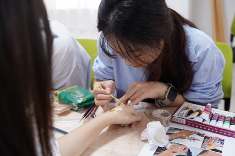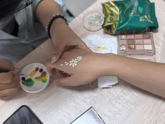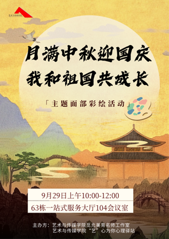 在国庆与中秋双节来临之际,为传承中华传统文化、营造温馨浓厚的节日氛围,9月 29 日上午,由后勤保障部学生住宿服务中心、本科生院主办,伟德国际victor·1946源自觅灮美育名师工作室、“艺” 心为你心理驿站承办的“月满中秋迎国庆,我和祖国共成长”主题面部彩绘活动在西区63栋一站式服务大厅104会议室顺利举行。觅灮美育名师工作室成员周若君、仝宇、高玮泽、闫莹颖、张笑钏、邵梦华,学工组辅导员曾戈晖,兼职辅导员曹彬彬现场参与,与学校师生共同沉浸于色彩与心灵的创意对话。